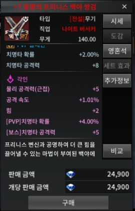 [기타] 전설 7광명프리니스 백야 쌍검 호텐4서버 25000다이아에 ㅍㅍ