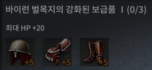 최대 HP를 +20 늘려주는 ‘바이런 벌목지의 강화된 보급품 I’