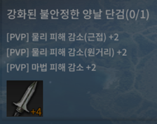 (2) 강화된 불안정한 양날 단검 – [PVP] 물리/마법 피해 감소 +2