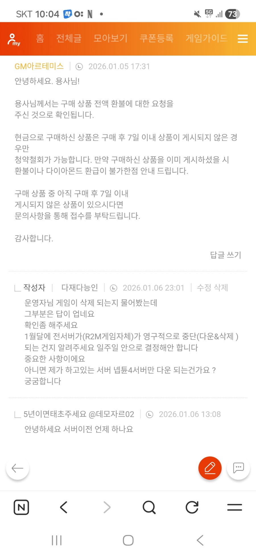 그런데 혹시 이번달 게임이 종료 되나요 ?