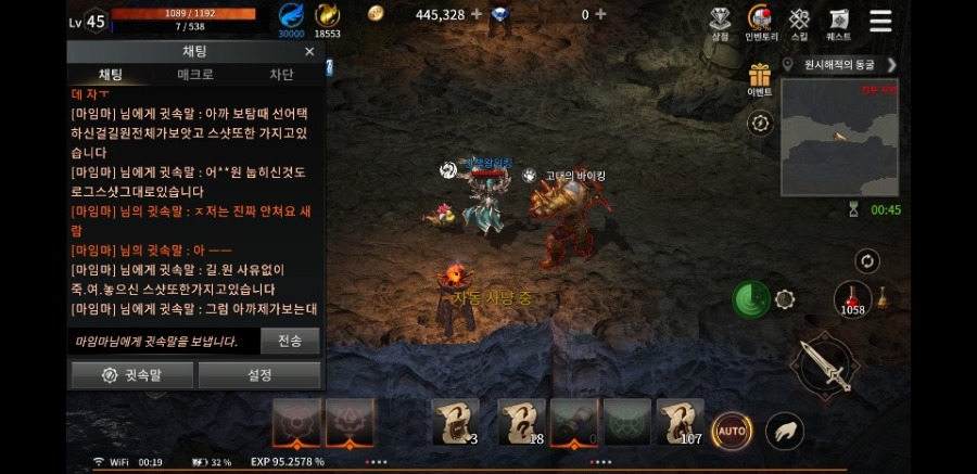 내가 마임만데 귓말로 죄송하다고 한게 잘못된건가 ?그리고 비매너모트 켜서 길마가 죽이라고한거임.중요한건 님이 먼저 전창 두ㅣ척이라고 나댓고 편**지 써가면서 중재 없다고 햇고 보탐때는 신기해서 쳐다보는데 님들이 먼저 때렷고 꼭 귀찬게 스샷까지 찍어가면서 이런데 올리면서 해야 겟니 **편 길마분이신거 같은데 님 길드 피해없으시다고 전창까지 햇엇죠 .지금도 잇는거 같은데 힘드시겟어요 길원도 자꾸 탈해서