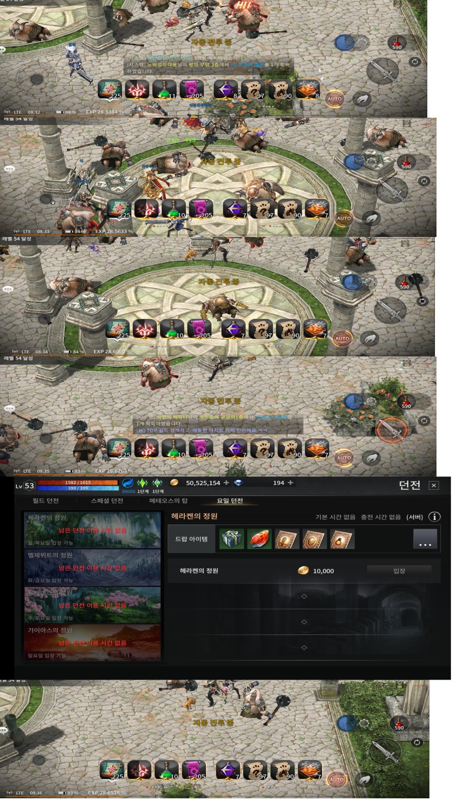 첫번째 사진부터 왼쪽 하단 보시면 8시32분에, 우측 상단보시면 던전 잔여시간 --:--로 정상적으로 끝났는데,