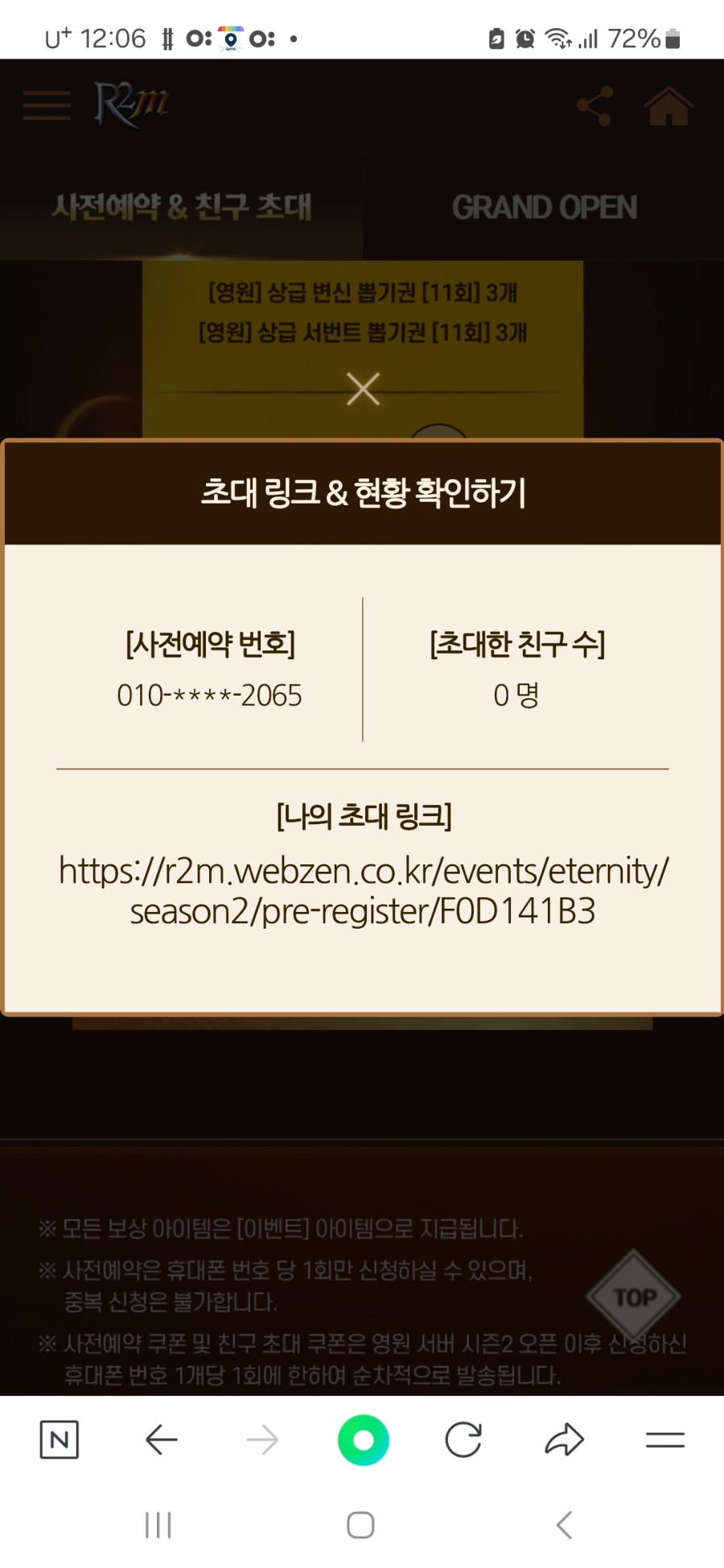 영원 서버 시즌2 사전예약 인증