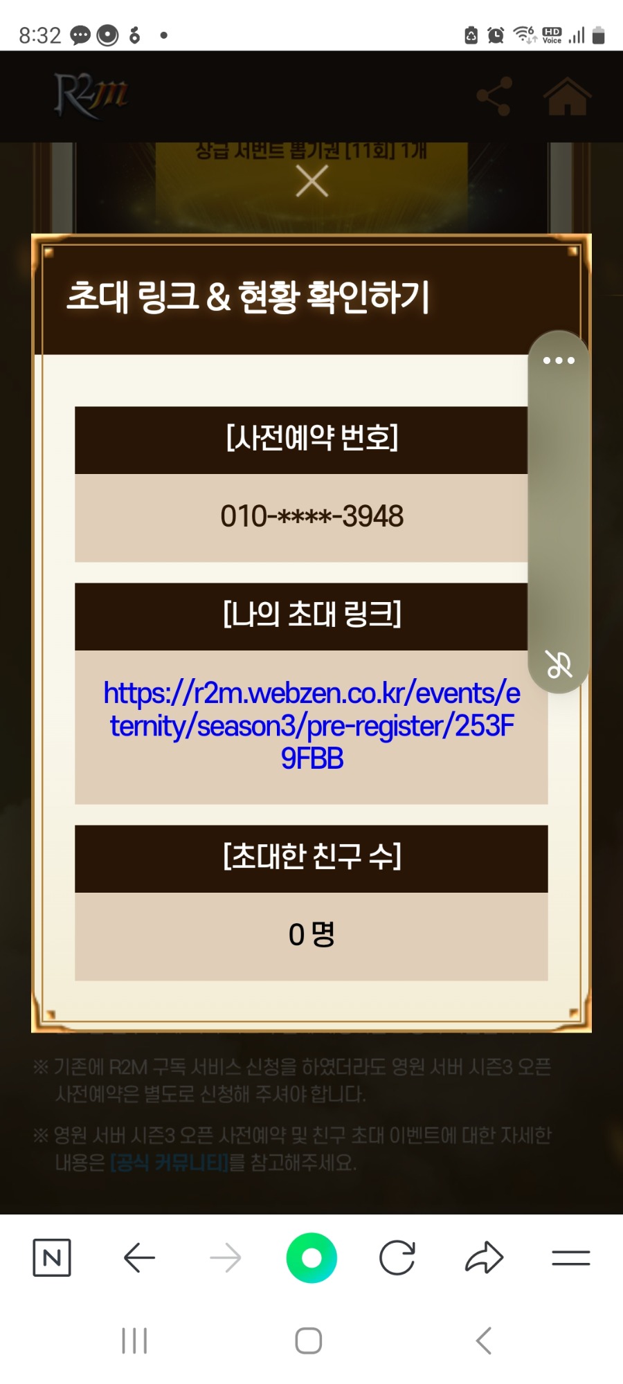 영원 서버 시즌3 사전예약 인증