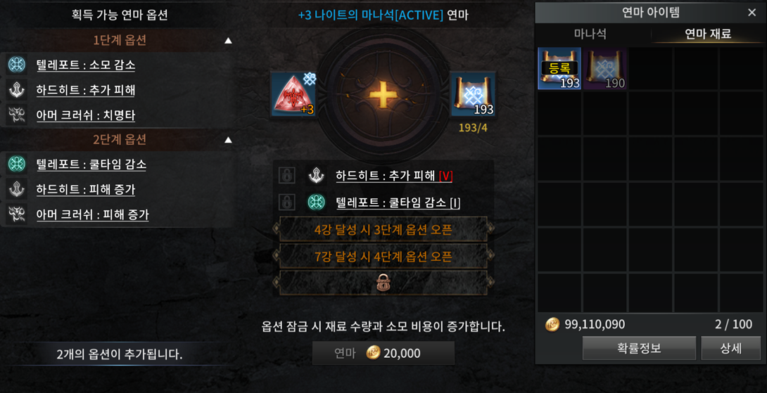 마나석을 이용하여 스킬 추가 능력치를 획득해 보세요!