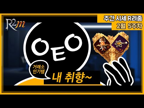 안녕하십니까 형님들~!한 주간 아이템 시세 변화를 한 눈에 알려주는거상R려줌입니다!어느새 2월의 마지막!! 통합 거래소 시세 현황 들구왔습니다!행님들의 취향에 맞는 거래소 인기 매물 추려서 부지런히 골라왔으니~ 영상을 통해 시세 확인하고 가세유~!✔2023년 2월 5주차 모든 서버 통합 거래소 인기템 시세✔영상